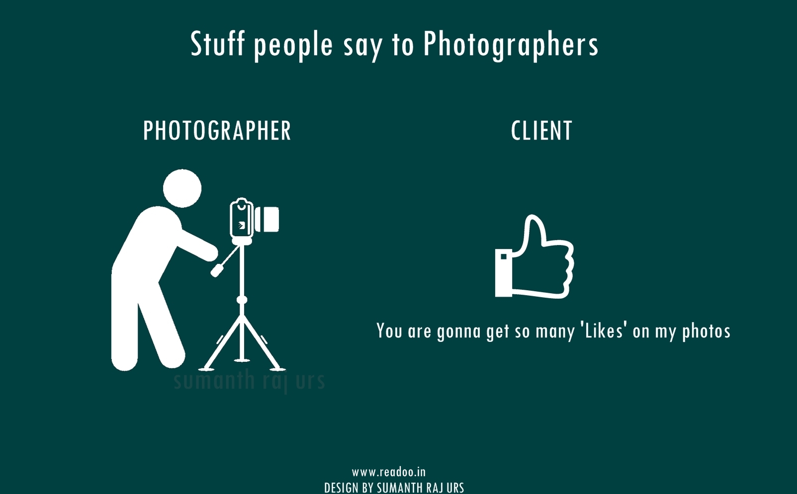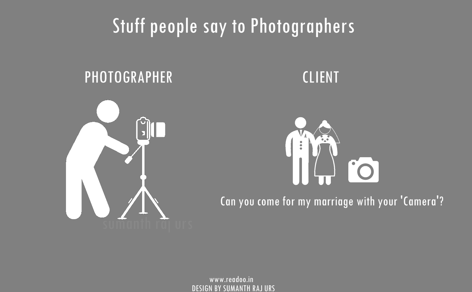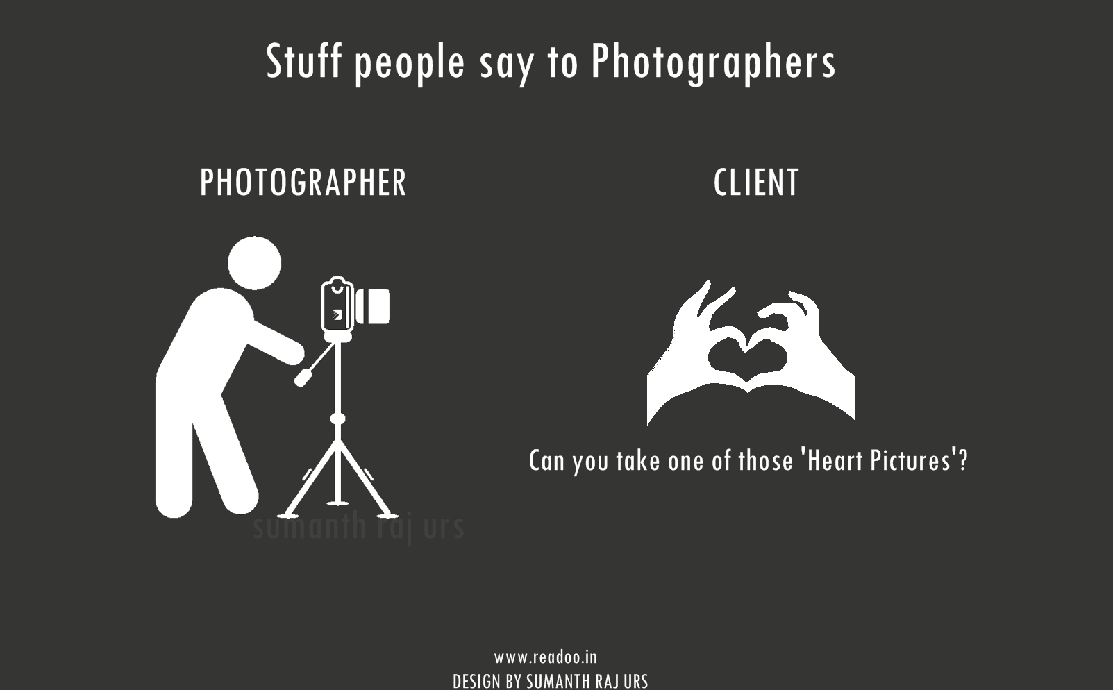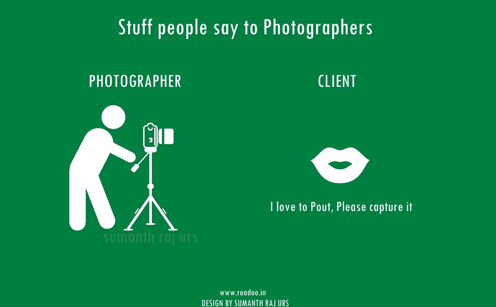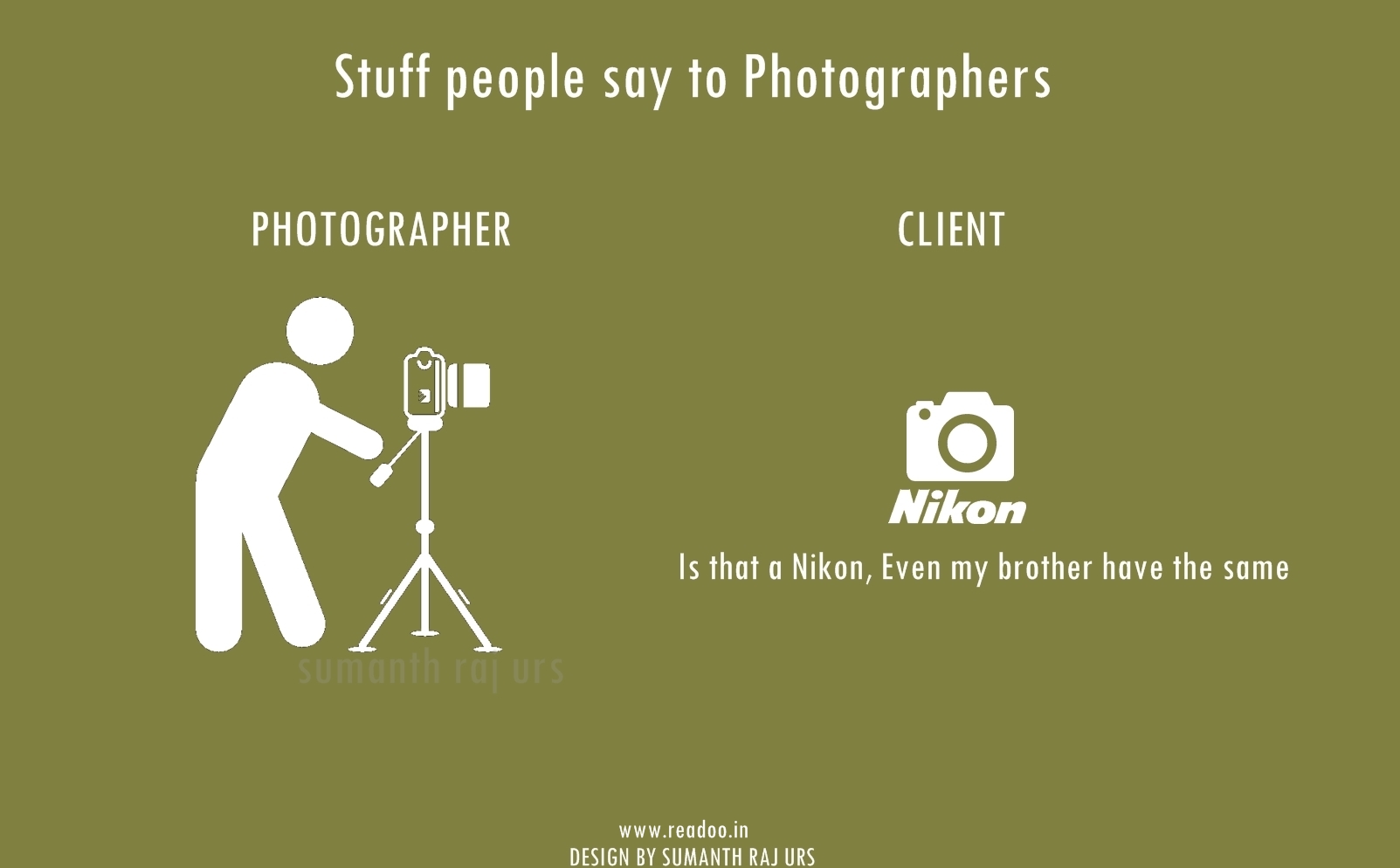 Youth Minimal Posters: 16 Stuff people say to the photographers Designs by Sumanth Raj Urs Guest Author Joining hands in the journey of Readoo.in, the guest authors will render you stories on anything under the sun.
